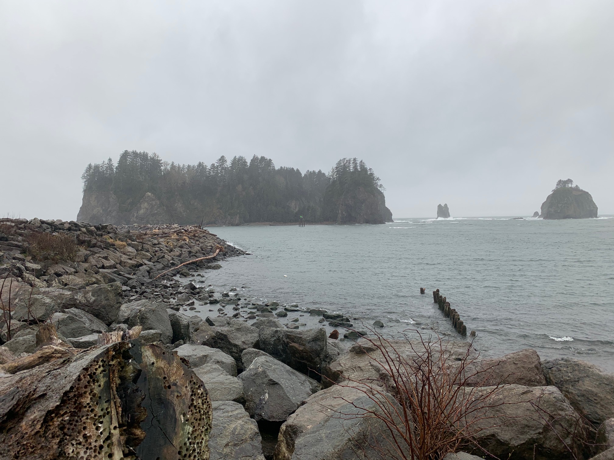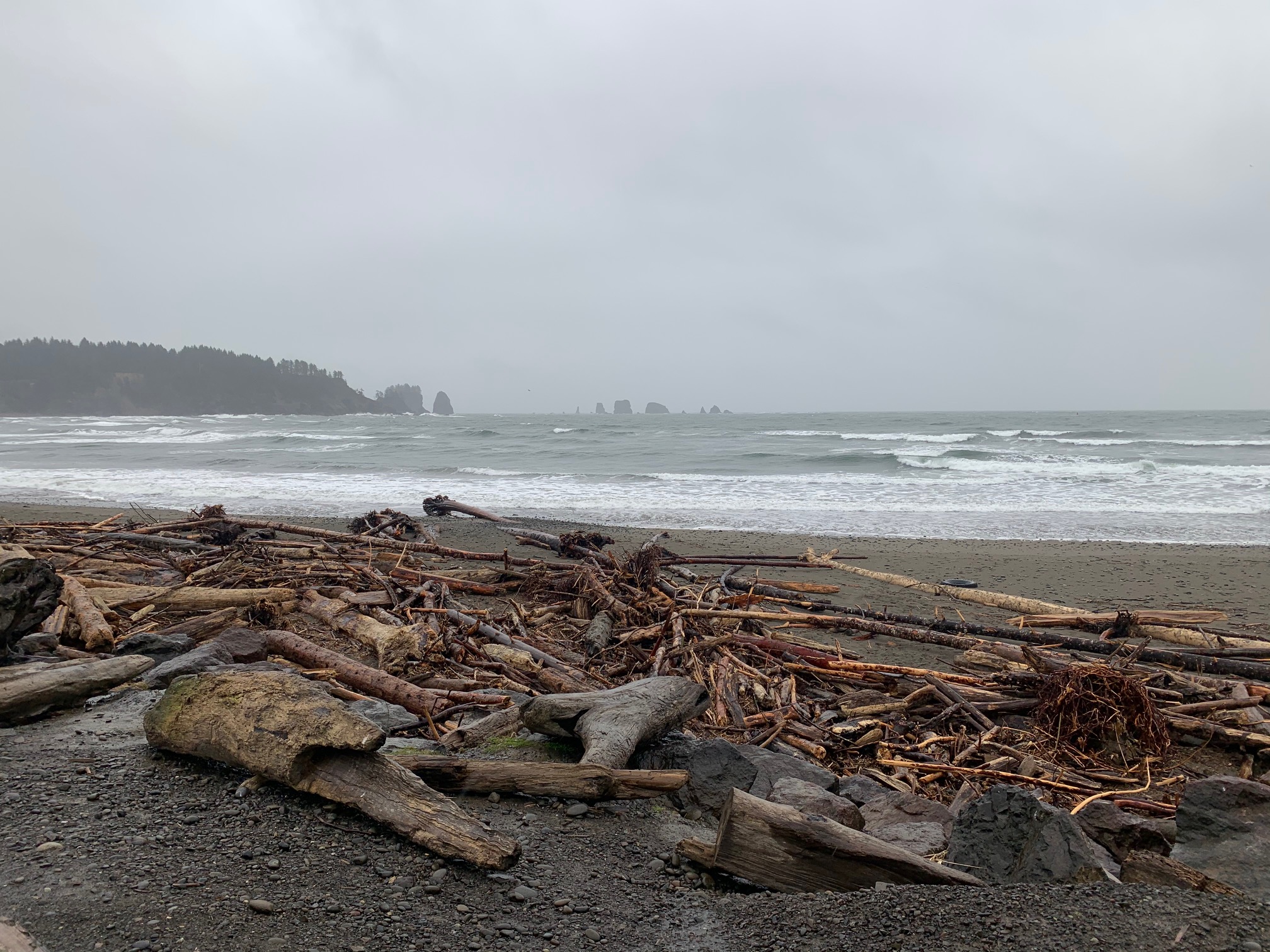Then you get to First Beach and…there are just no words to describe it. We didn’t stay long because it was absolutely pouring rain but I NEED to go back. We turned it the corner at one point and I literally gasped out loud – it was just absolutely beautiful. I’ve seen a million beaches here in California, all up and down our coast and even the ocean from Mexico and all of it was gorgeous but this beach was just so different from what I know. It was absolutely beautiful. Truly just so gorgeous and worth a trip. I would’ve stayed and looked for hours if I wasn’t getting drenched more and more by the second.